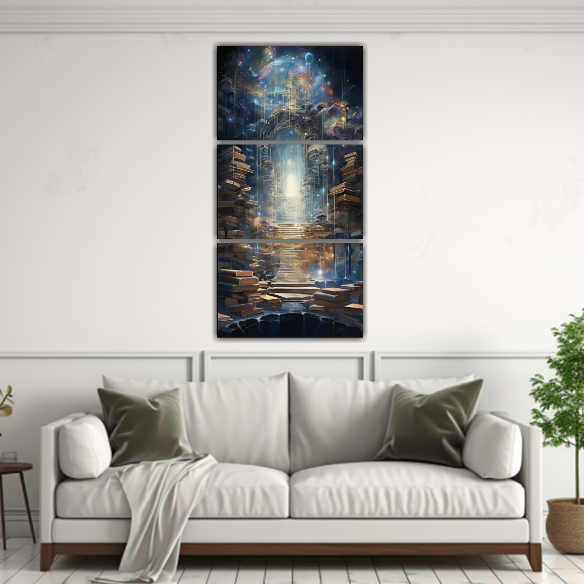 Conjunto 3 Cuadros Lienzos Modernos Abstractos De Biblioteca Mística Con Flores
