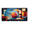 Coloca este conjunto de cuadros en tu sala de estar para crear un ambiente moderno y vibrante Combina muy bien con muebles en tonos neutros como beige o gris, y agrega algunos cojines en colores que complementen las naranjas y azules de los cuadros ¡Será el centro de atención de tus visitas!