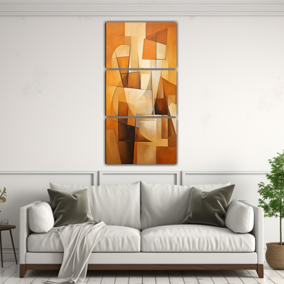 Este Conjunto de 3 Cuadros Vanguardia Simétricos en tonos terrosos sería ideal para colocar sobre un sofá en la sala de estar, creando un punto focal moderno y sofisticado Combínalos con cojines en colores neutros para resaltar su belleza