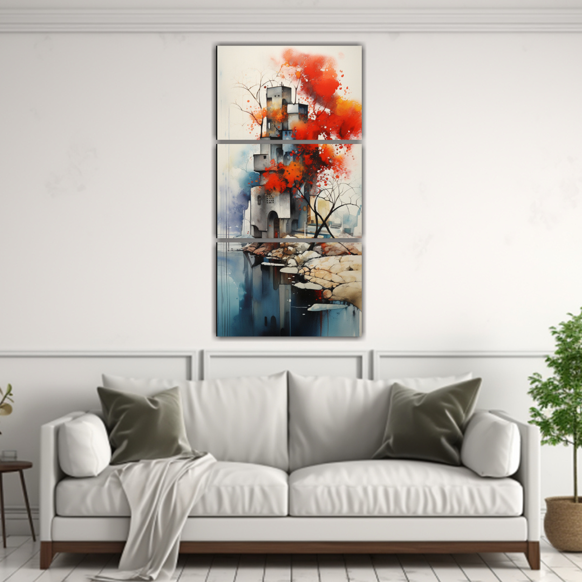 Conjunto 3 Lienzos Abstracto Culturar Paisaje Acuarela Abstracta