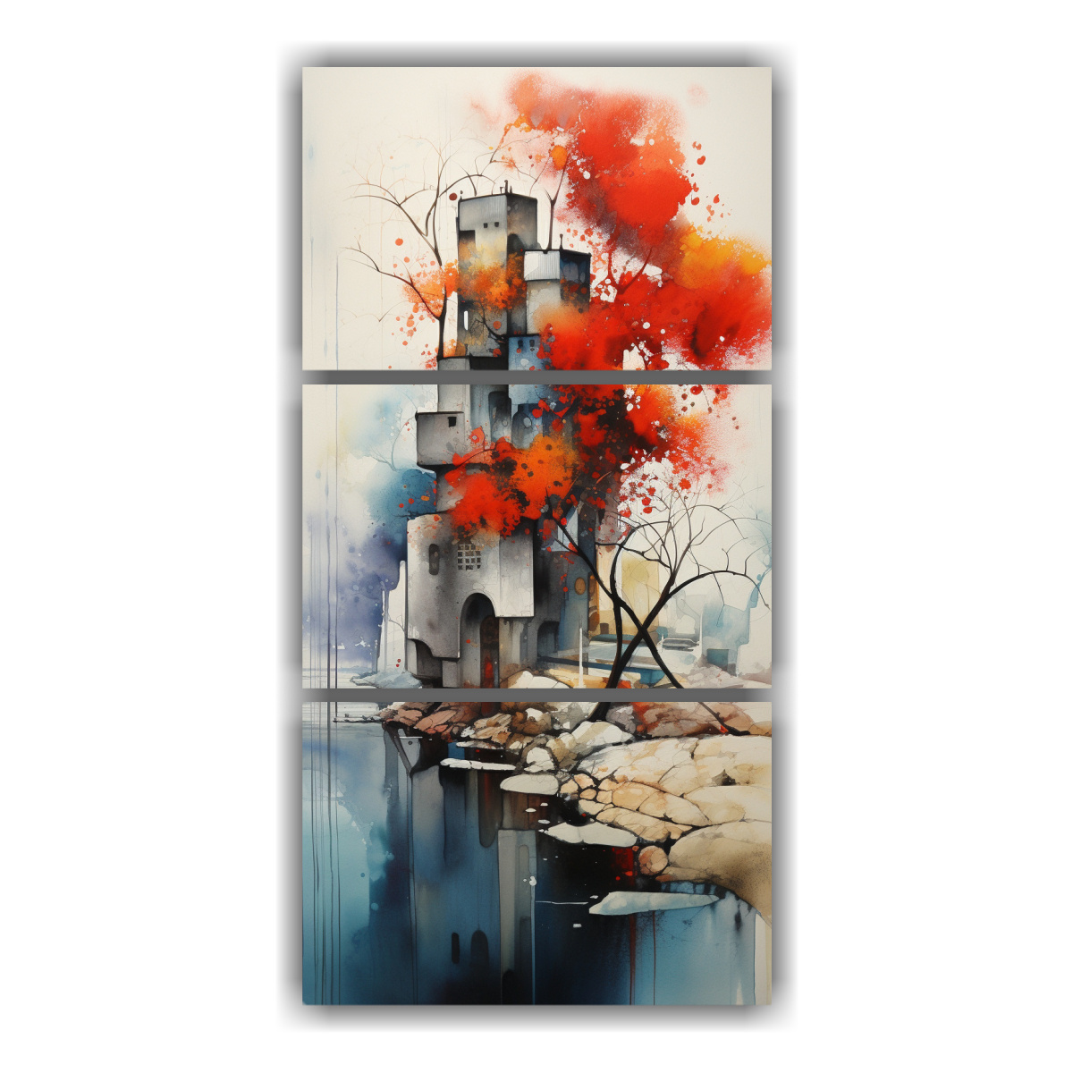 DecoCuadros presenta su conjunto de 3 lienzos abstracto culturar paisaje acuarela abstracta en los colores azul marino grisaceo, plateado, carmesí, gris, coral y menta Impresos en tela de alta calidad con bastidores de madera, estos cuadros ofrecen diseños exclusivos para darle vida a tus espacios Nuestra tienda se destaca por brindar la mejor calidad del mercado a precios accesibles Realizamos entregas rápidas y gratuitas en Santiago y envíos express a regiones Decora tu hogar con estilo y personalidad con nuestros cuadros decorativos
