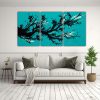 Este conjunto de lienzos es ideal para decorar una sala de estar moderna Puedes colocarlo sobre un sofá de color gris oscuro para resaltar los tonos turquesa y negro del cuadro Complementa la decoración con cojines y cortinas en tonos plateados y verdes azulados para lograr una atmósfera elegante y sofisticada