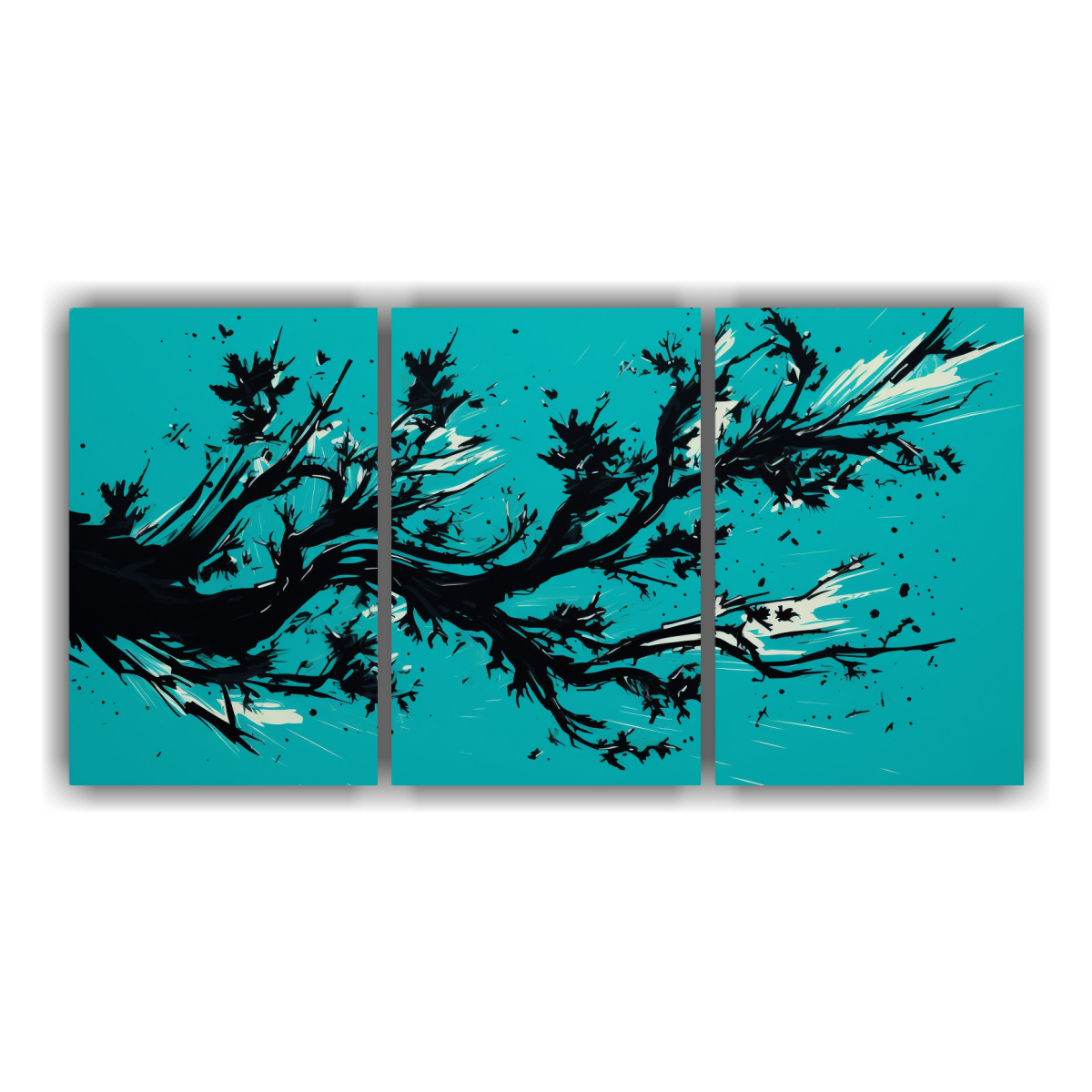 Conjunto 3 Lienzos Cuadro árbol Pino Turquesanegro Estilo Neonoir