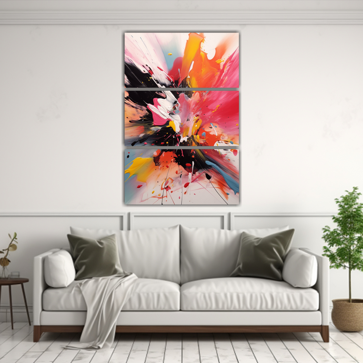 Este conjunto de 3 lienzos decorativos es perfecto para añadir un toque de color y estilo a tu sala de estar o comedor Puedes colocarlos juntos en una pared vacía para crear un punto focal o distribuirlos en diferentes espacios para lograr un efecto más dinámico Combínalos con muebles en tonos neutros como blanco, gris o negro para resaltar los colores vibrantes de los cuadros ¡No dudes en añadir estos cuadros a tu decoración y transforma tu hogar en un espacio único y moderno!