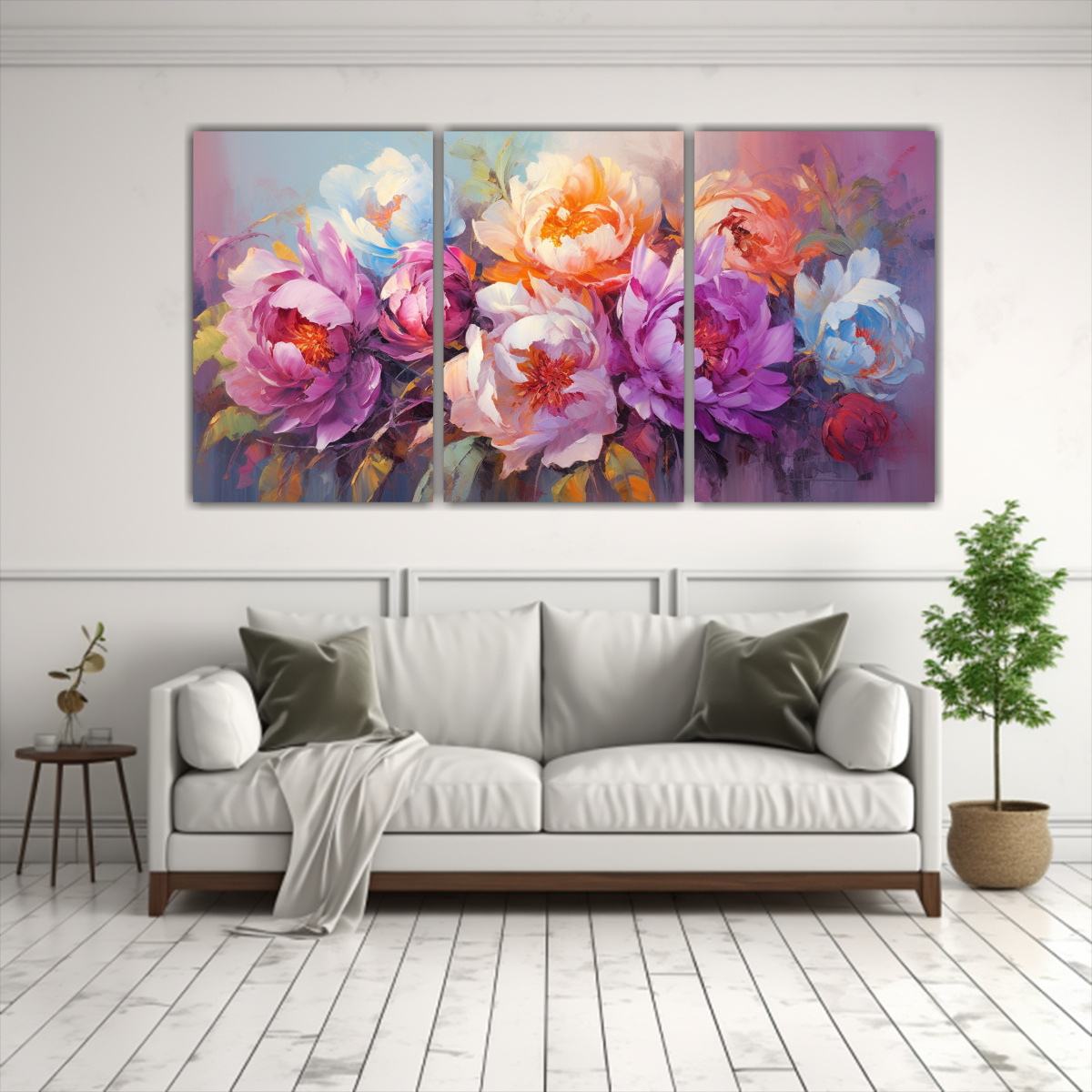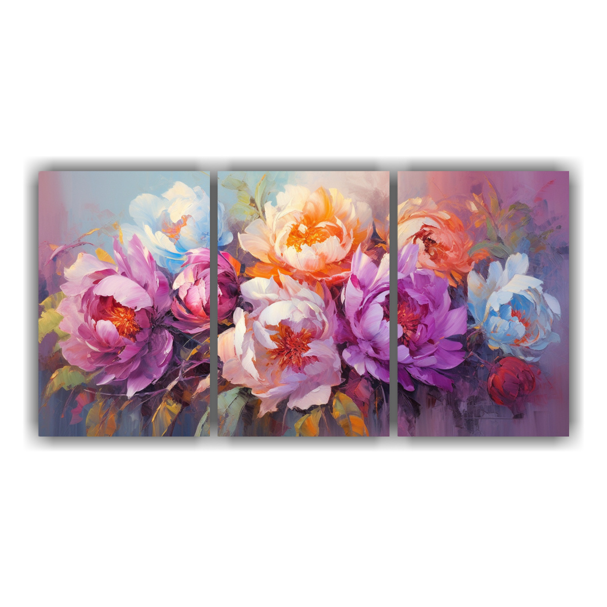 Conjunto 3 Lienzos Decorativos Poder Flores Peonías Arcoíris