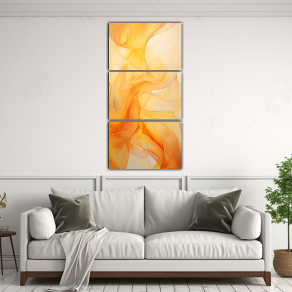 Conjunto 3 Lienzos Tela Majestuosas Whirling Abstractos En Vivos Tonos Amarillos