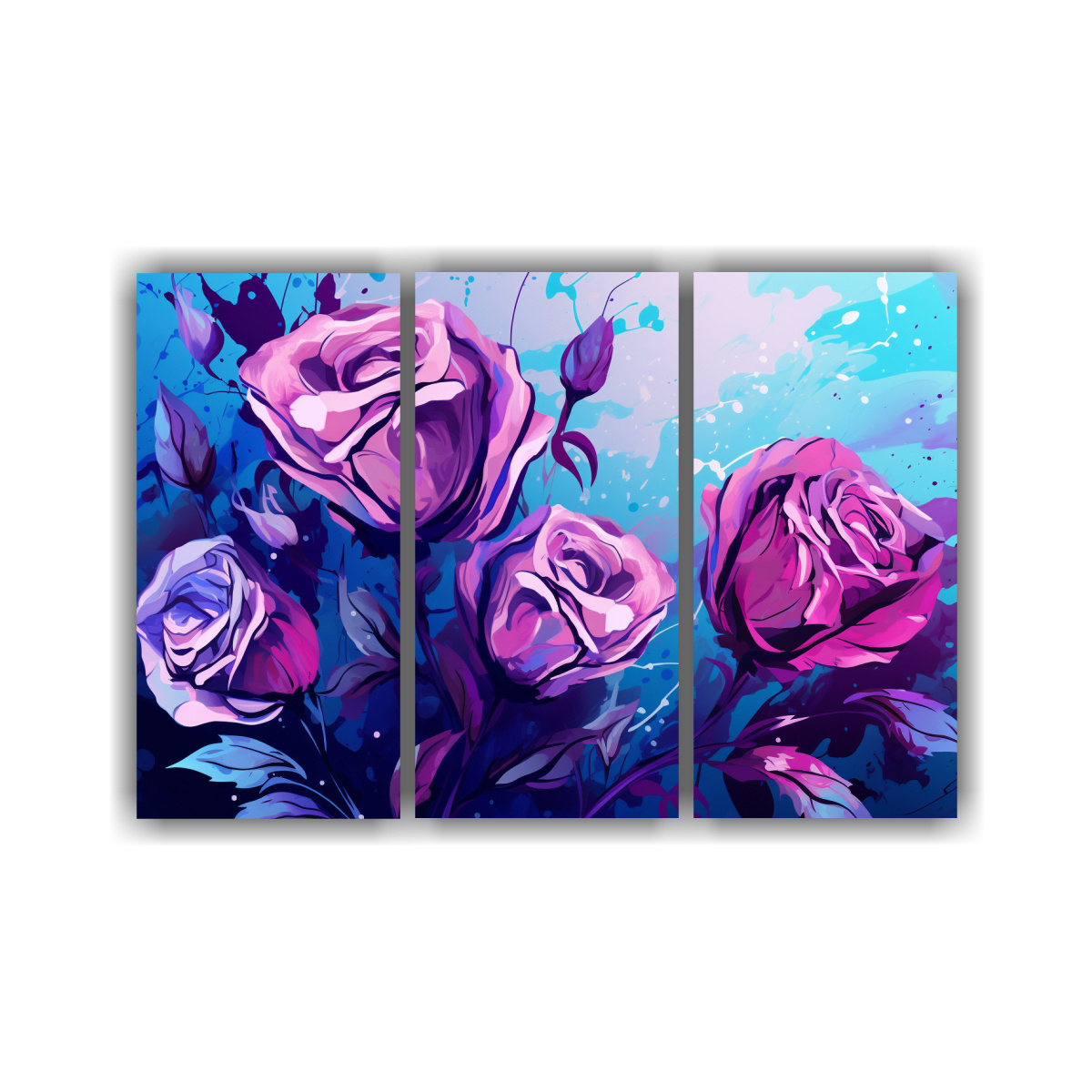 Conjunto 3 Lienzos Tela Única Púrpura Y Azul Estilo Neonoir