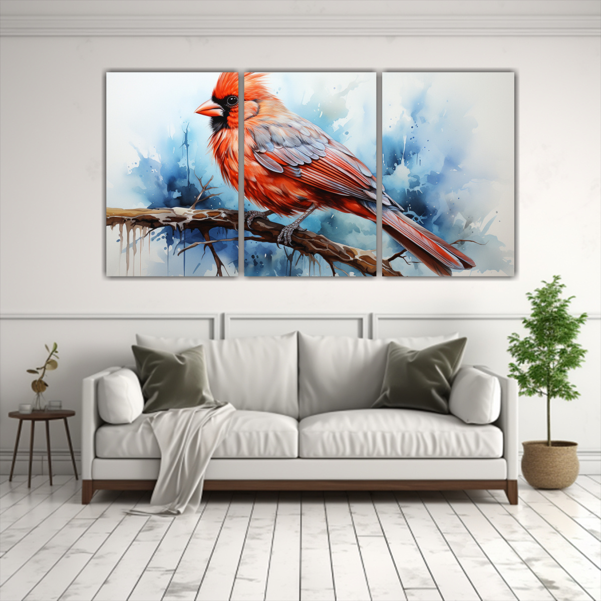 Conjunto 3 Obras Arte Impactante Color Acuarelas Estilo Pintura Cardenal