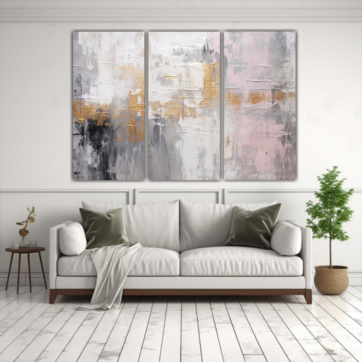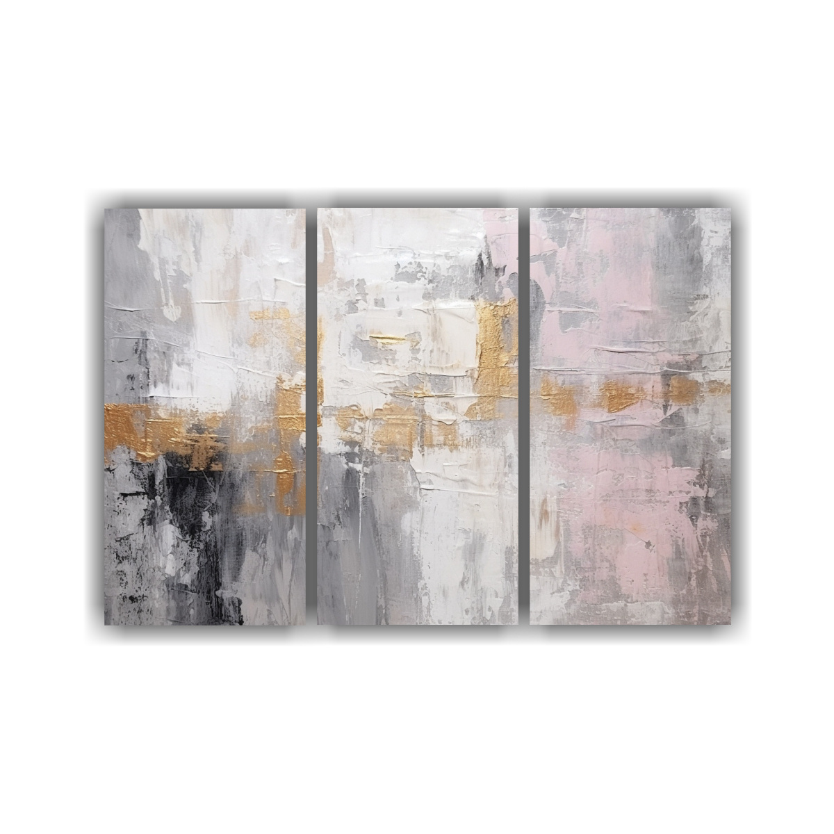 Conjunto 3 Telas Bastidor Abstractas Texturas Blanco Negro Gris