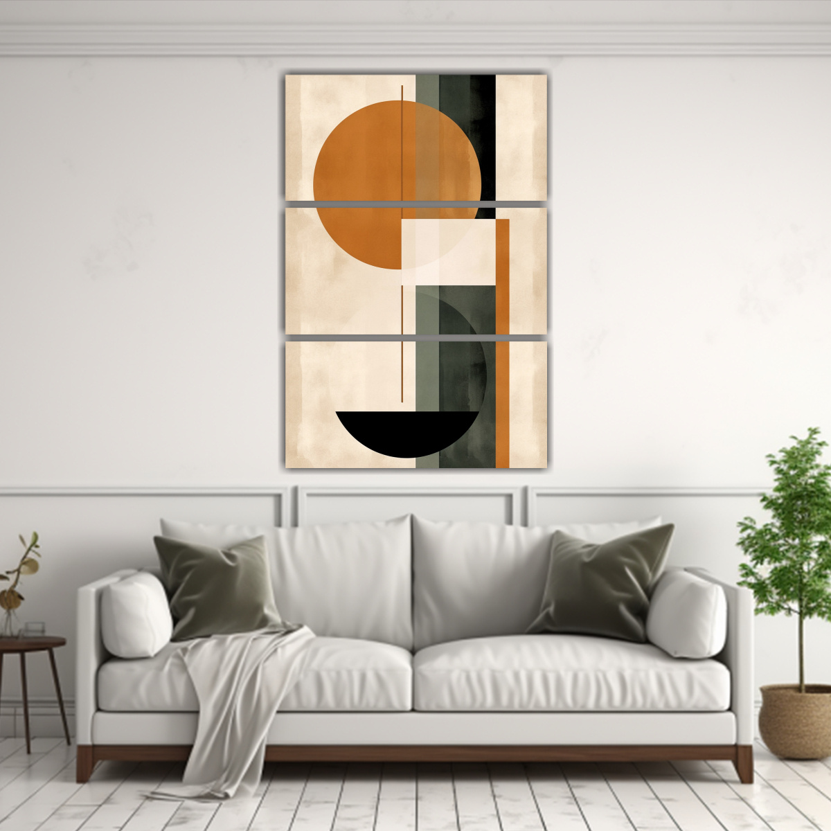Este cuadro de conjunto 3 telas en bastidor acuarela con contraste y composición simple y paralelas en colores Coral, Beige, Azul Marino grisáceo, Chocolate, Gris y Plateado, es perfecto para decorar tu sala de estar Puedes colocarlo sobre un sofá o una mesa auxiliar para crear un punto focal en la habitación Combínalo con cojines en tonos neutros y accesorios en colores similares para lograr una decoración armoniosa y elegante ¡Atrévete a darle un toque artístico a tu hogar con este hermoso cuadro!