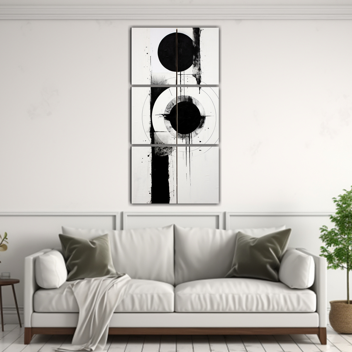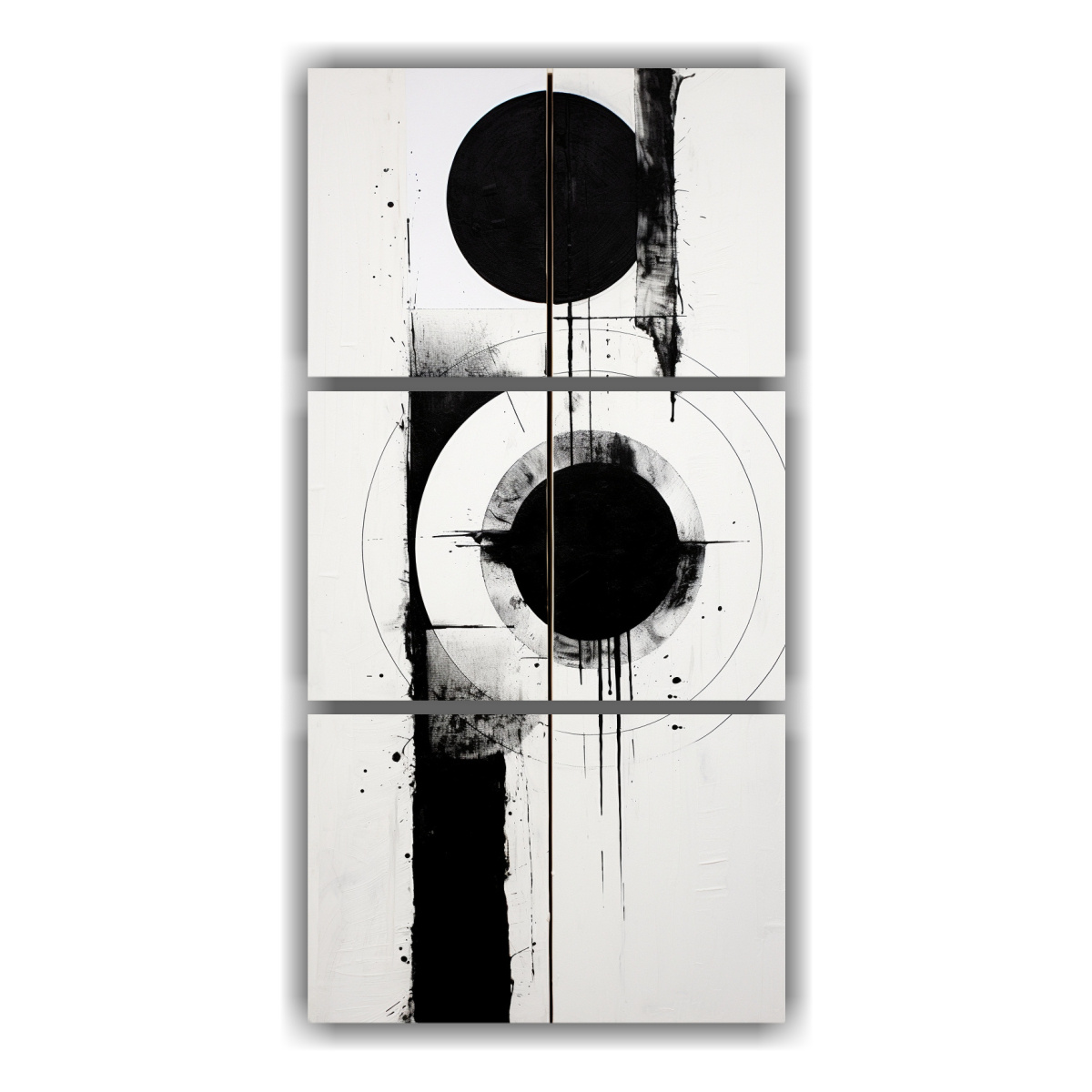 Conjunto 3 Telas Bastidor Estilo Galería Clásico Pinturas Abstractas Blanco Negro, Círculo Enfoque