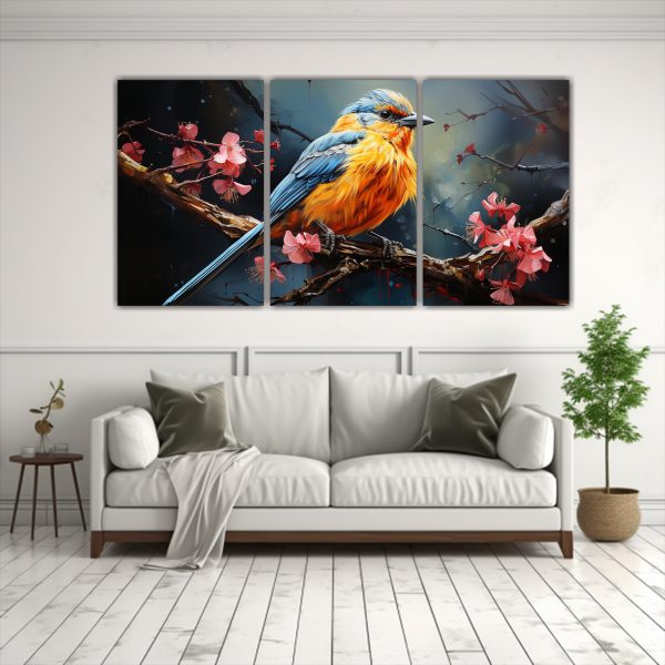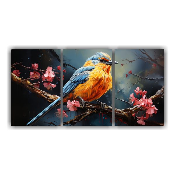 Conjunto 3 Telas Bastidor Estilo Pintura Estilo Óleo Colorida Equilibrada Finches