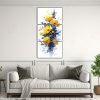 Para realzar la elegancia de tu comedor, te recomendamos colocar este conjunto de telas en bastidor abstractas amarillo y azul sobre una pared en tono neutro Combínalo con una mesa de madera oscura y sillas en tonos plateados o turquesa para lograr un ambiente sofisticado y moderno