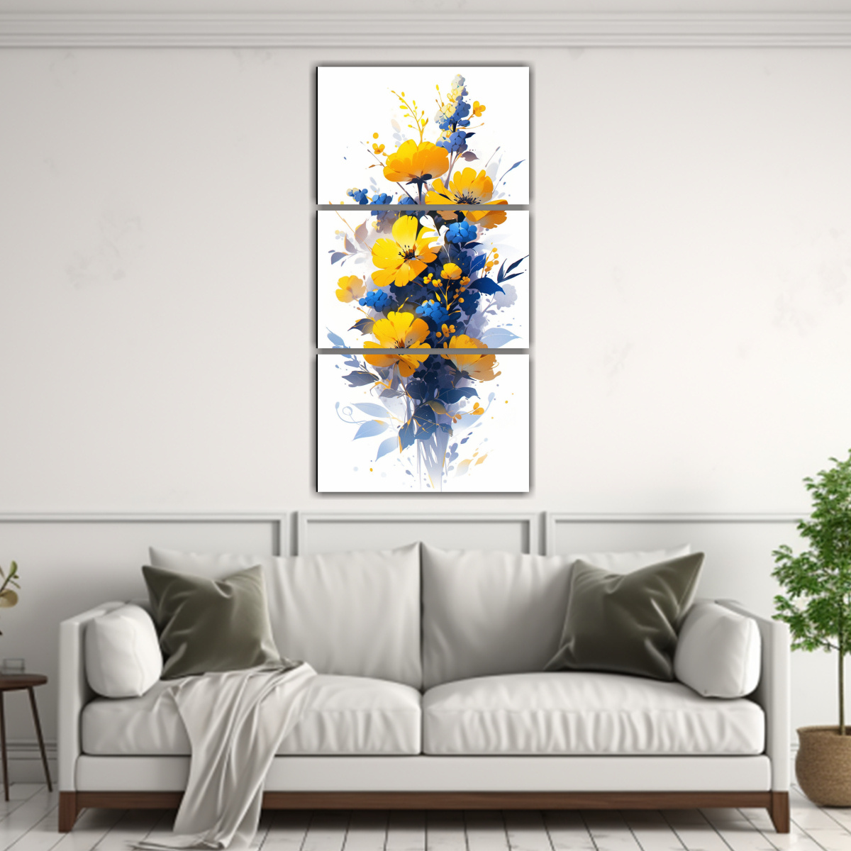Conjunto 3 Telas En Bastidor Abstractas Amarillo Y Azul Para Comedor