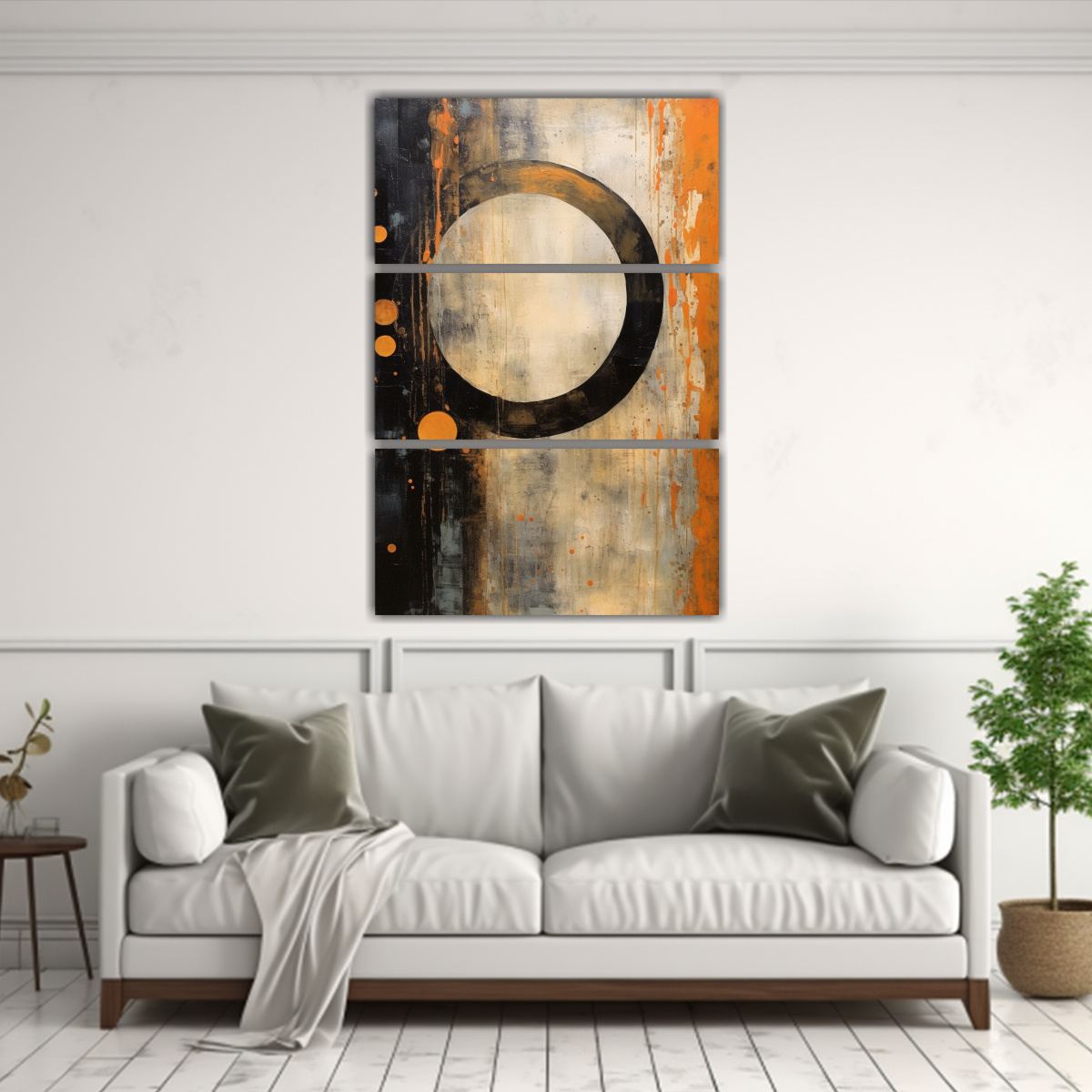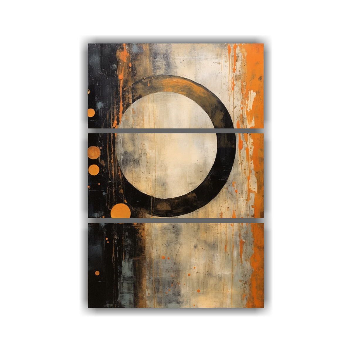 Conjunto 3 Telas En Bastidor Expresión Fantástica Con Manchas Negras Y Naranjas En Estilo Zen