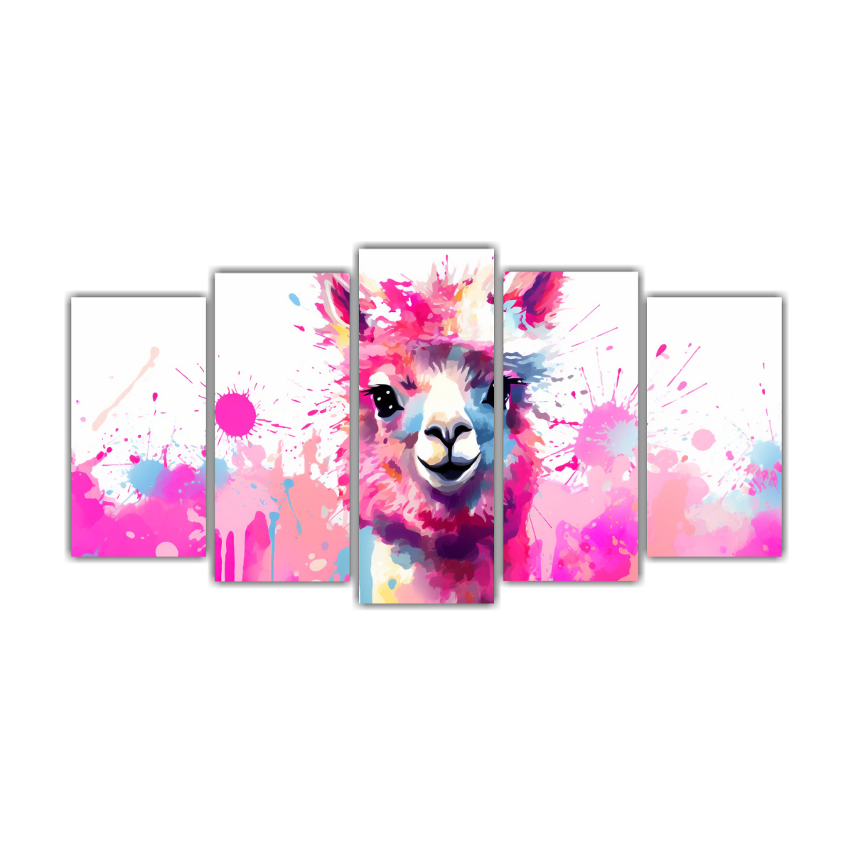 Conjunto 5 Composiciones Decorativas Alpaca En Tonos Pastel Y Rosa Neo Pop Art
