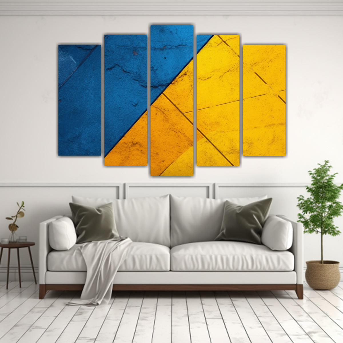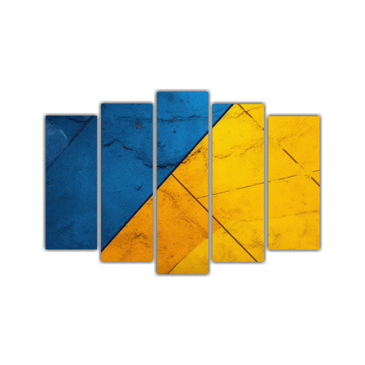 Conjunto 5 Composiciones Tela Canvas Luminosidad Amarillo Y Azul