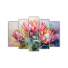 Conjunto 5 Cuadros Colores Fantásticos Flores Violeta Amarillo Naranja Arte Abstracto