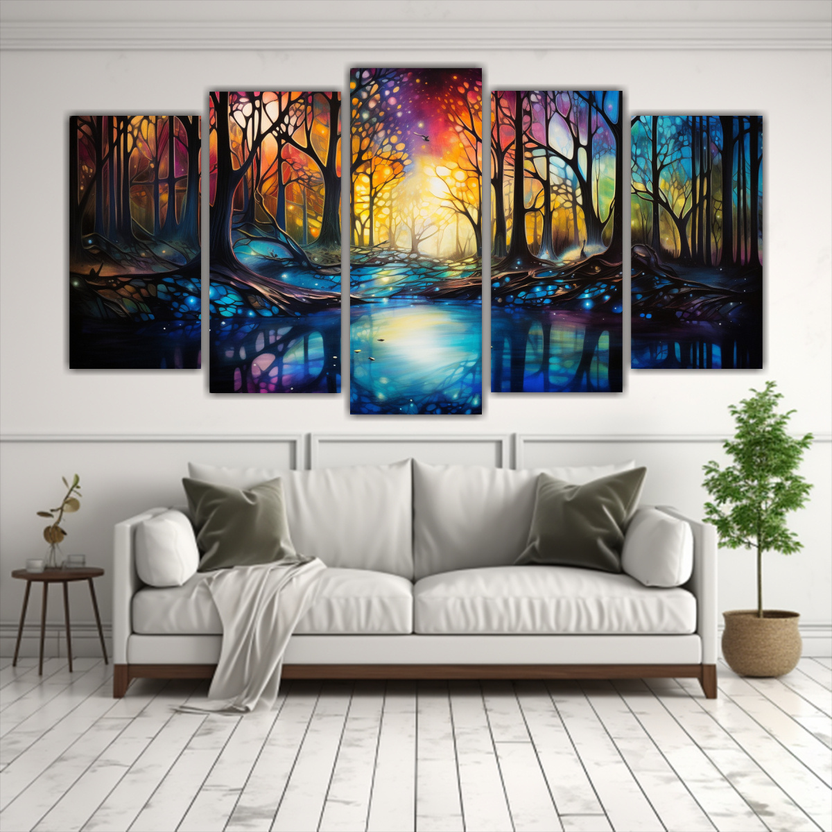 Conjunto 5 Cuadros Colores Impacto Visual Enchanted Forest Brillos Abstractos