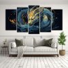Conjunto 5 Cuadros Creativa Dragón En Oro Y Azul Neonoir