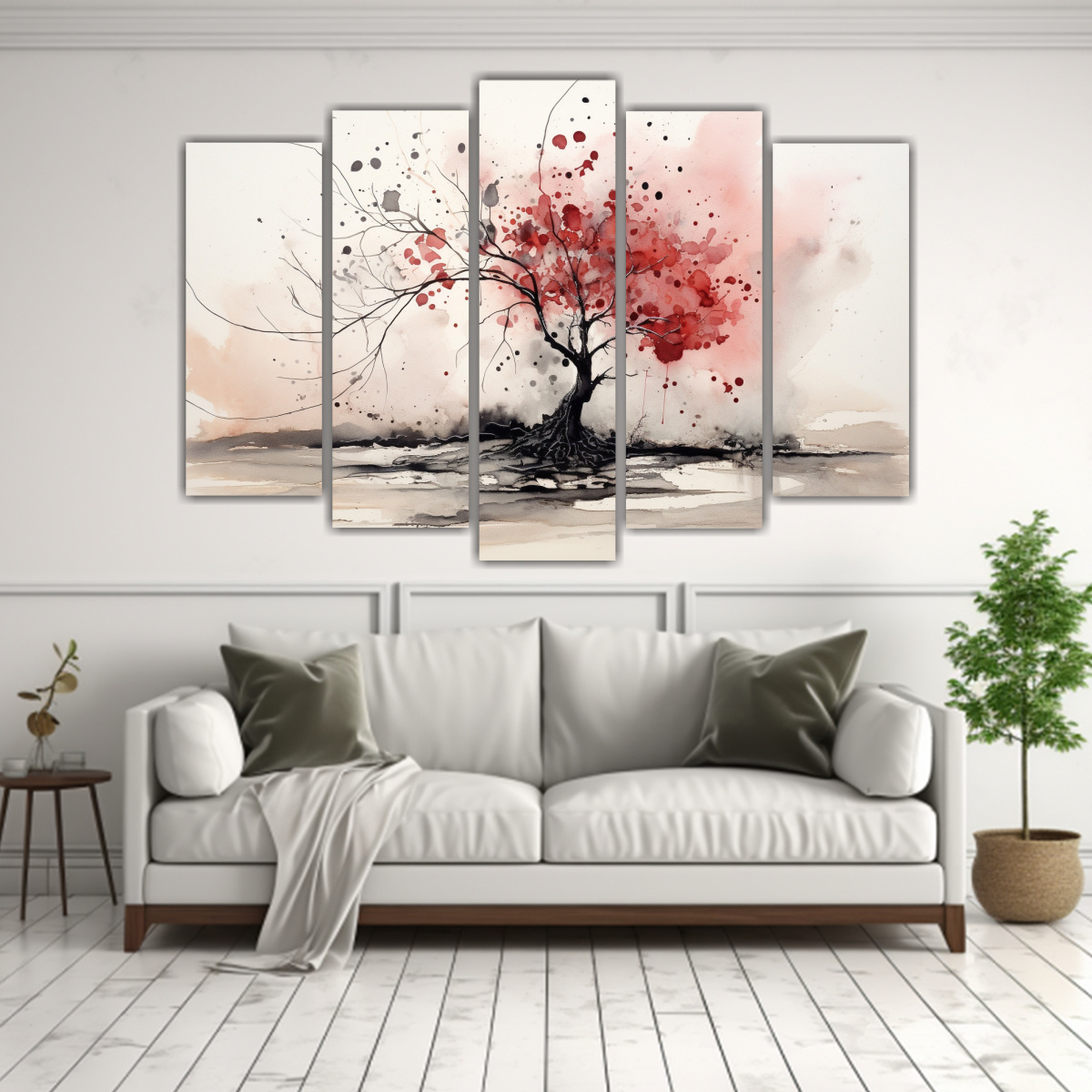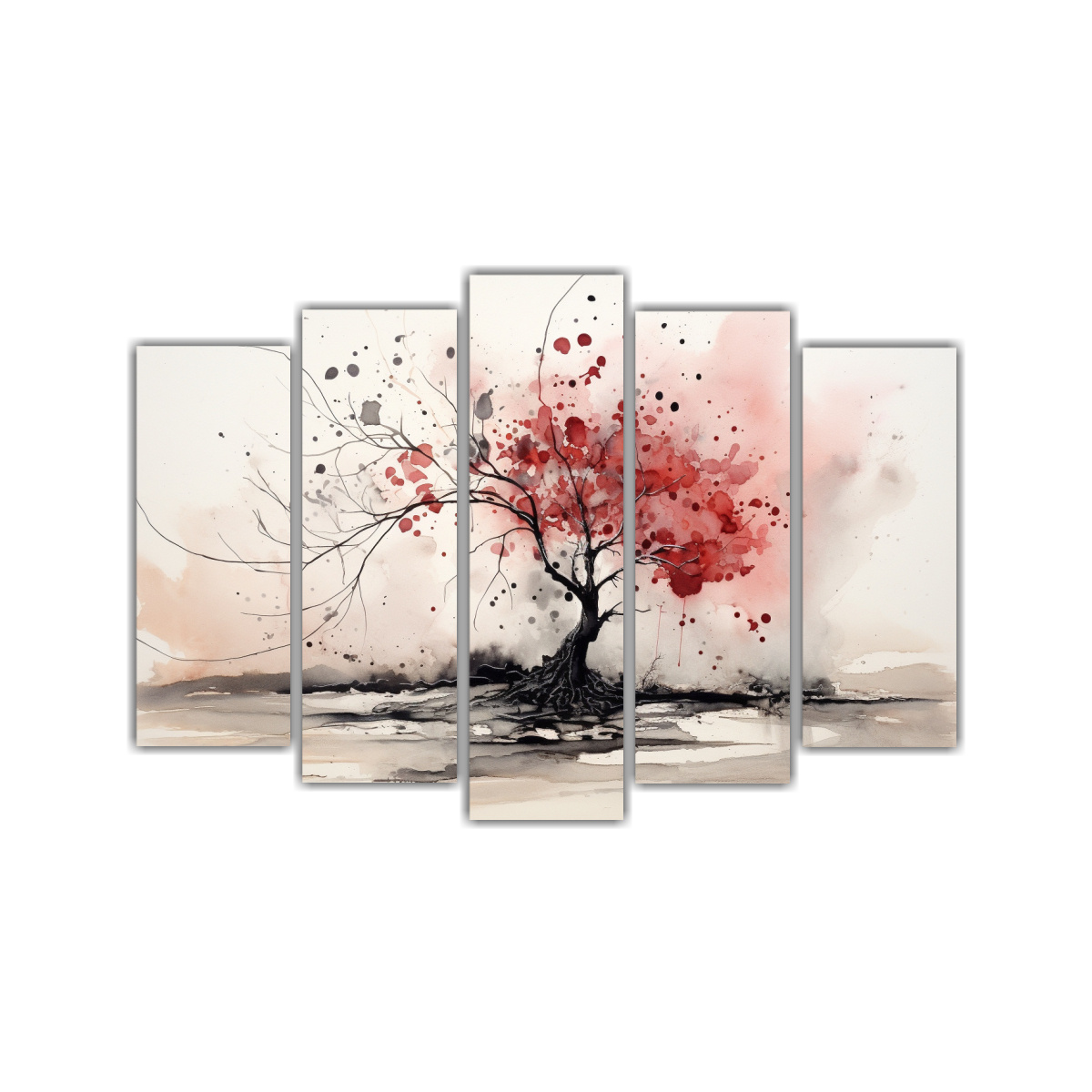 Conjunto 5 Cuadros Dibujo Simetría Árbol Fondo Rojo Y Negro