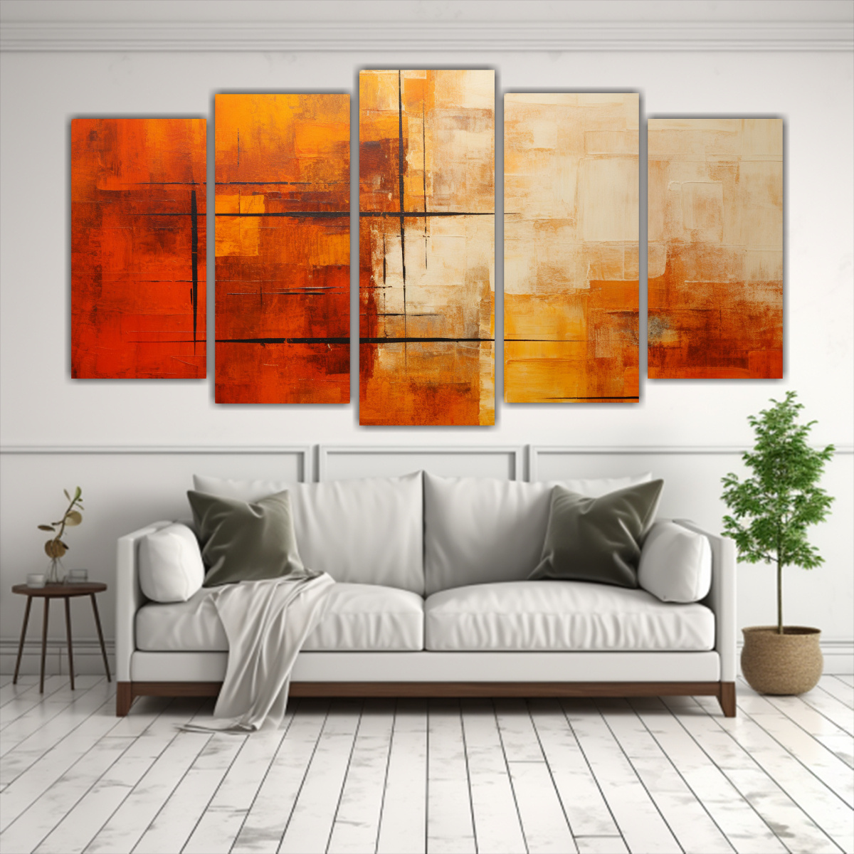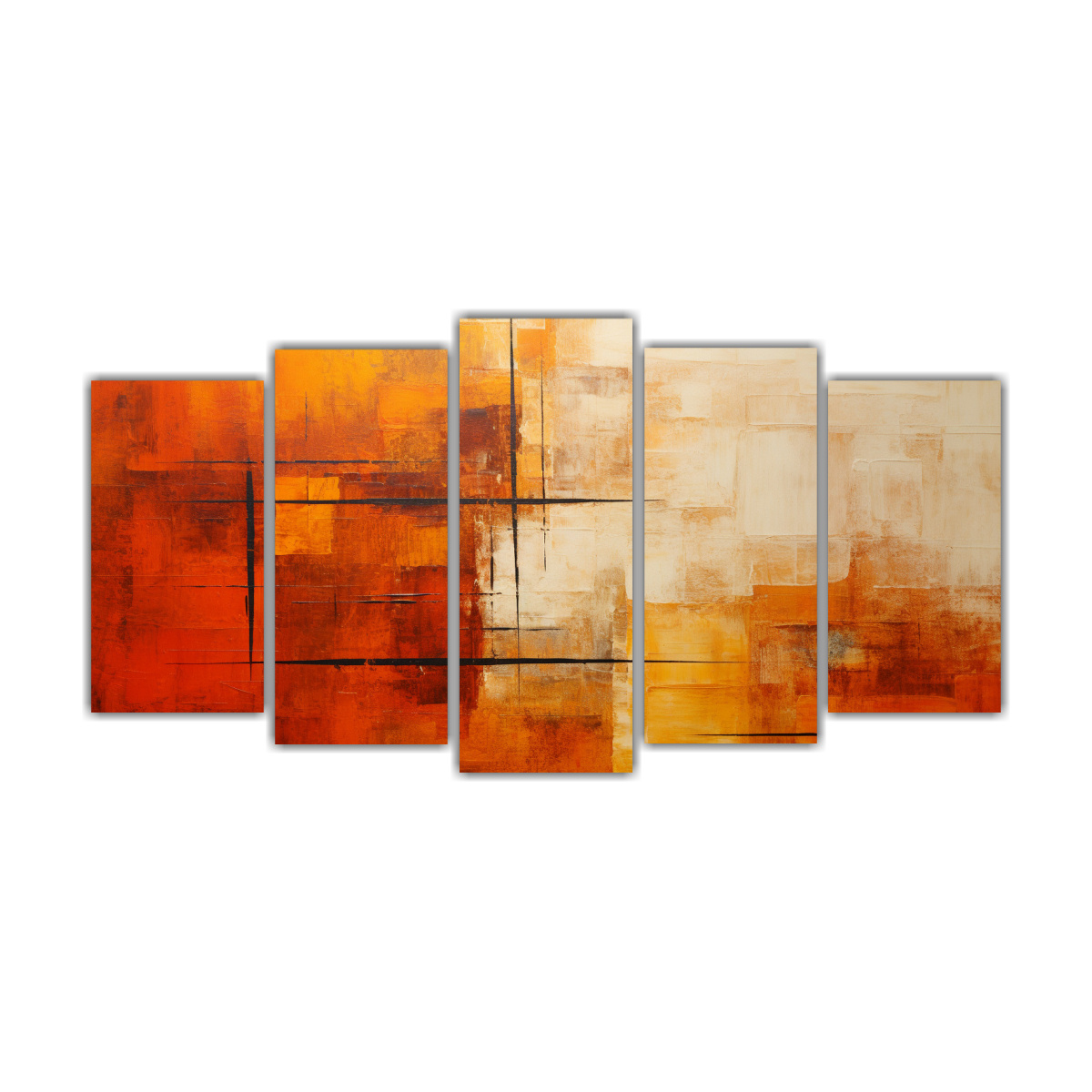 Conjunto 5 Cuadros Inspiración Equilibrio Abstractos Naranja