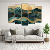 Coloca este conjunto en un salón minimalista para darle vida y sofisticación Combina con muebles de líneas rectas y tonos neutros para resaltar la belleza de las montañas abstractas en verde y oro ¡Crea un ambiente moderno y único en tu hogar!