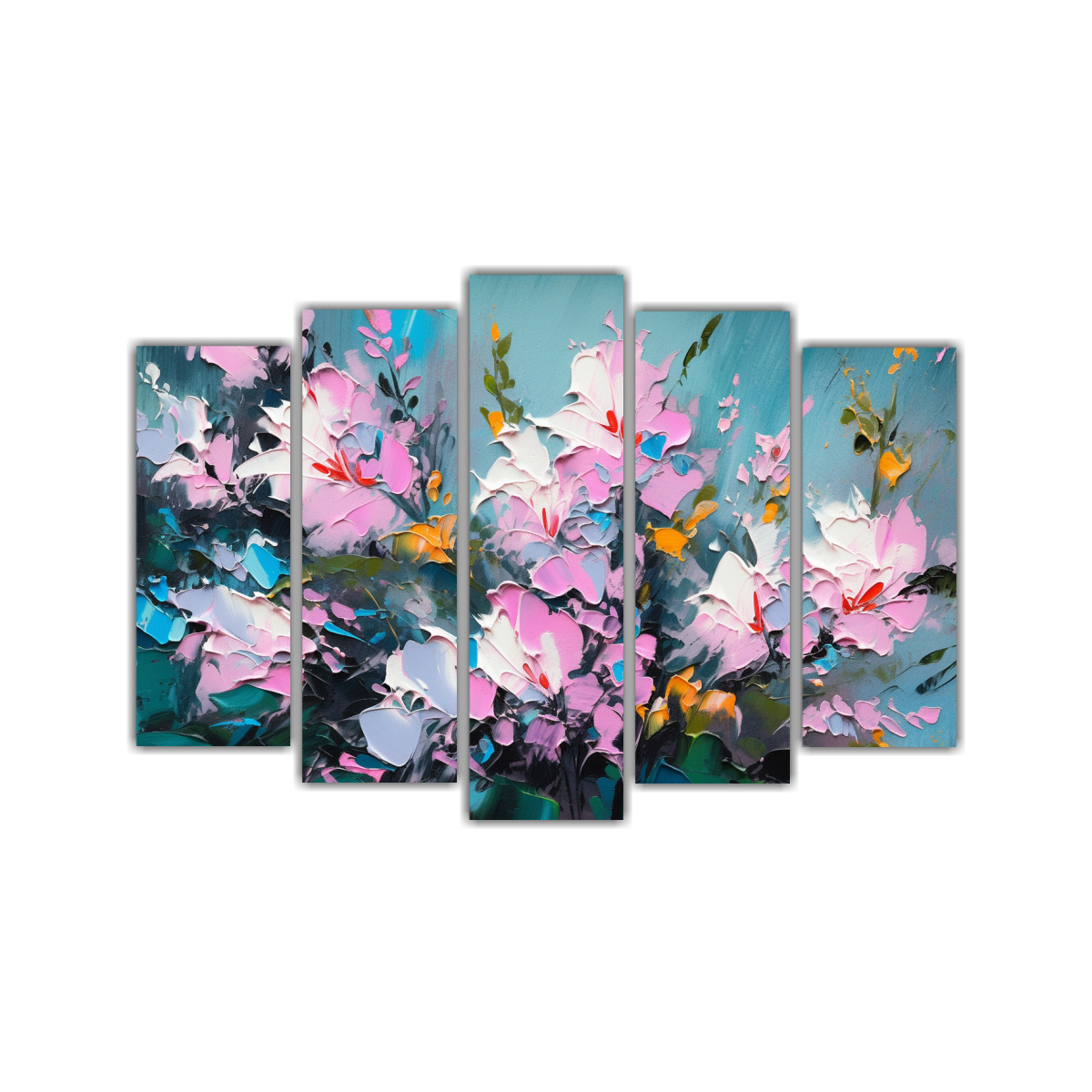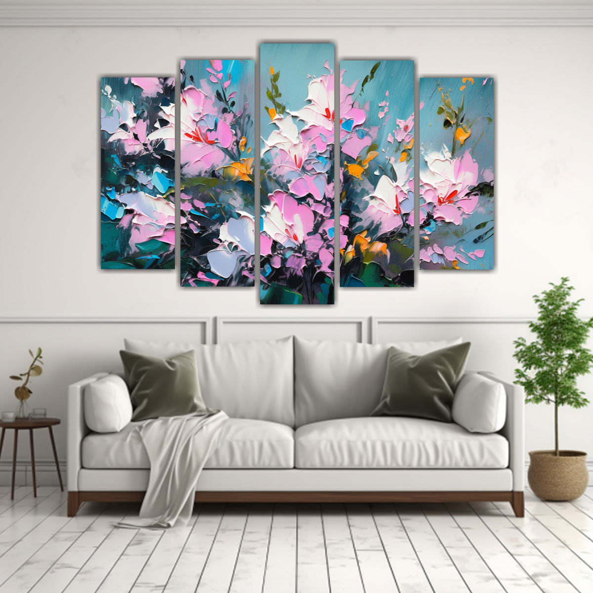 Conjunto 5 Cuadros Moderno Urbano Flores Vibrantes Estilo Vib