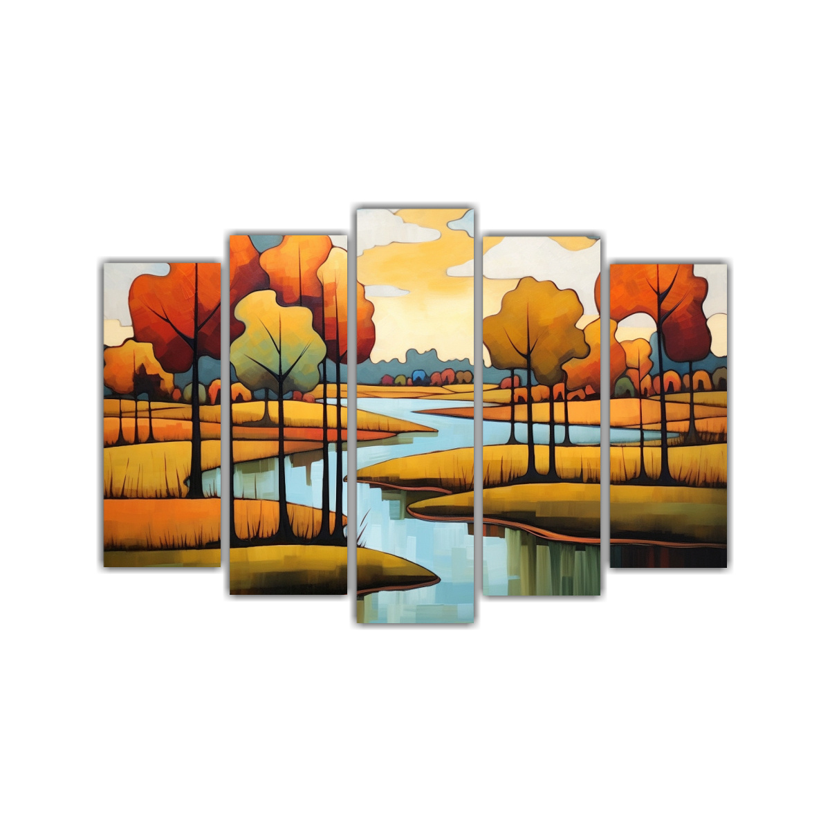 Conjunto 5 Cuadros Modernos Abstractos Paisajes Contemporáneos