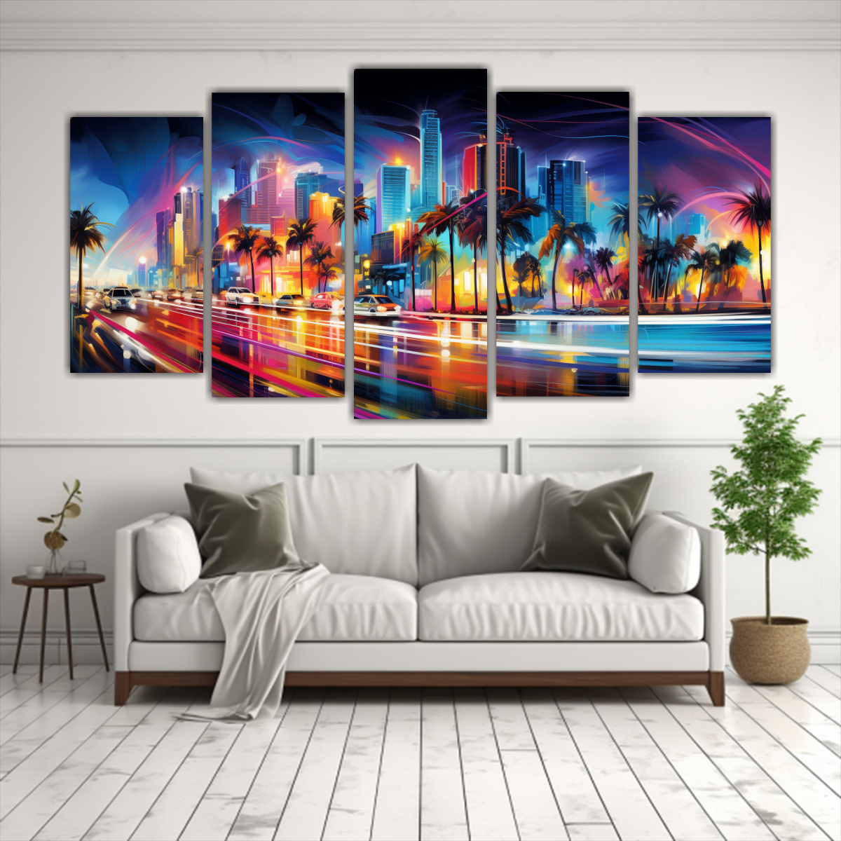 Conjunto 5 Cuadros Movimiento Abstracto Neon Adorable: Ecos Vibrantes De Miami Beach