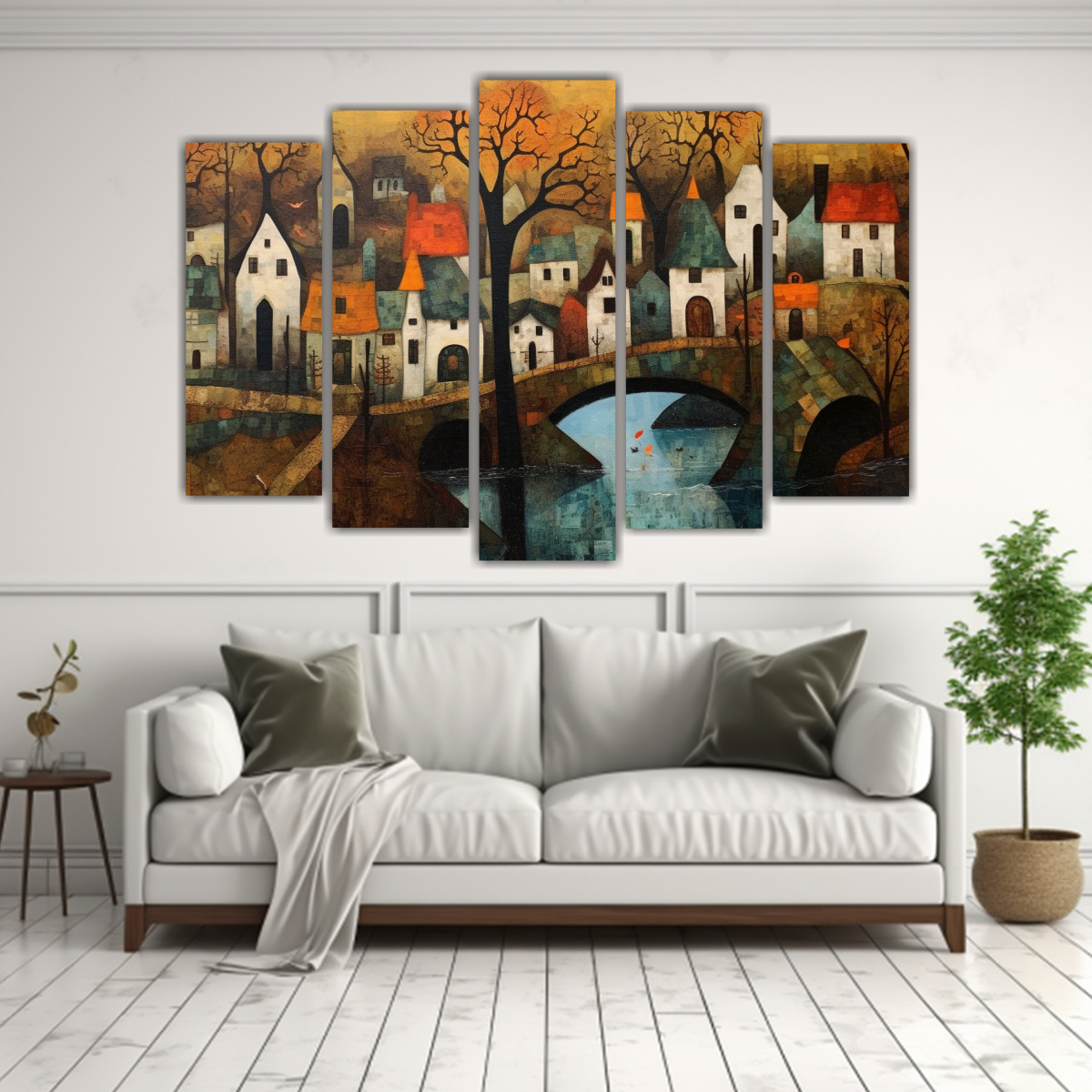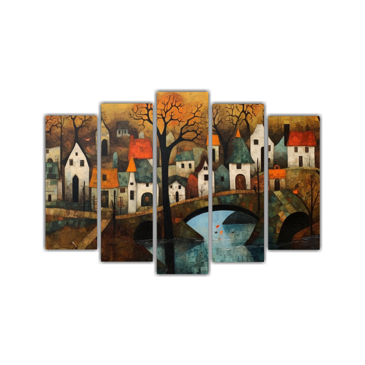 Este conjunto de 5 cuadros decorativos de paisaje expresionismo alemán lucirá espectacular en tu sala de estar Colócalos en una pared amplia para crear un impacto visual impresionante Combínalos con muebles de tonos neutros para resaltar la belleza de los colores y texturas de las obras ¡Transforma tu espacio en un ambiente acogedor y elegante con esta pieza de arte exclusiva!