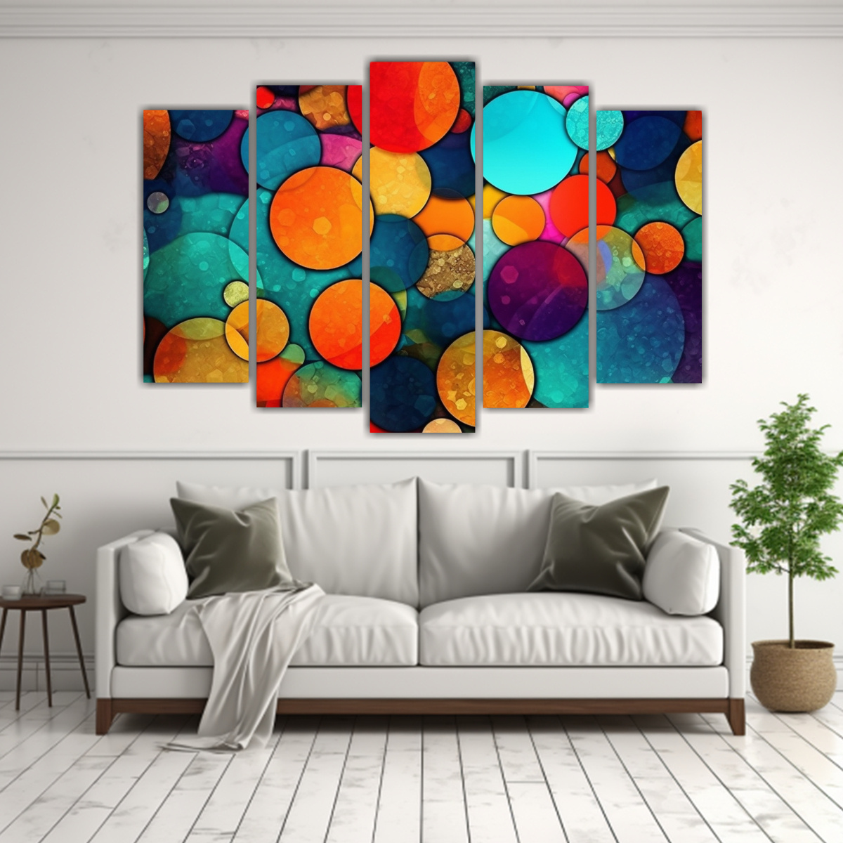 Conjunto 5 Cuadros Tela Canvas Diseño Colorido Formas Y Texturas Vistosas