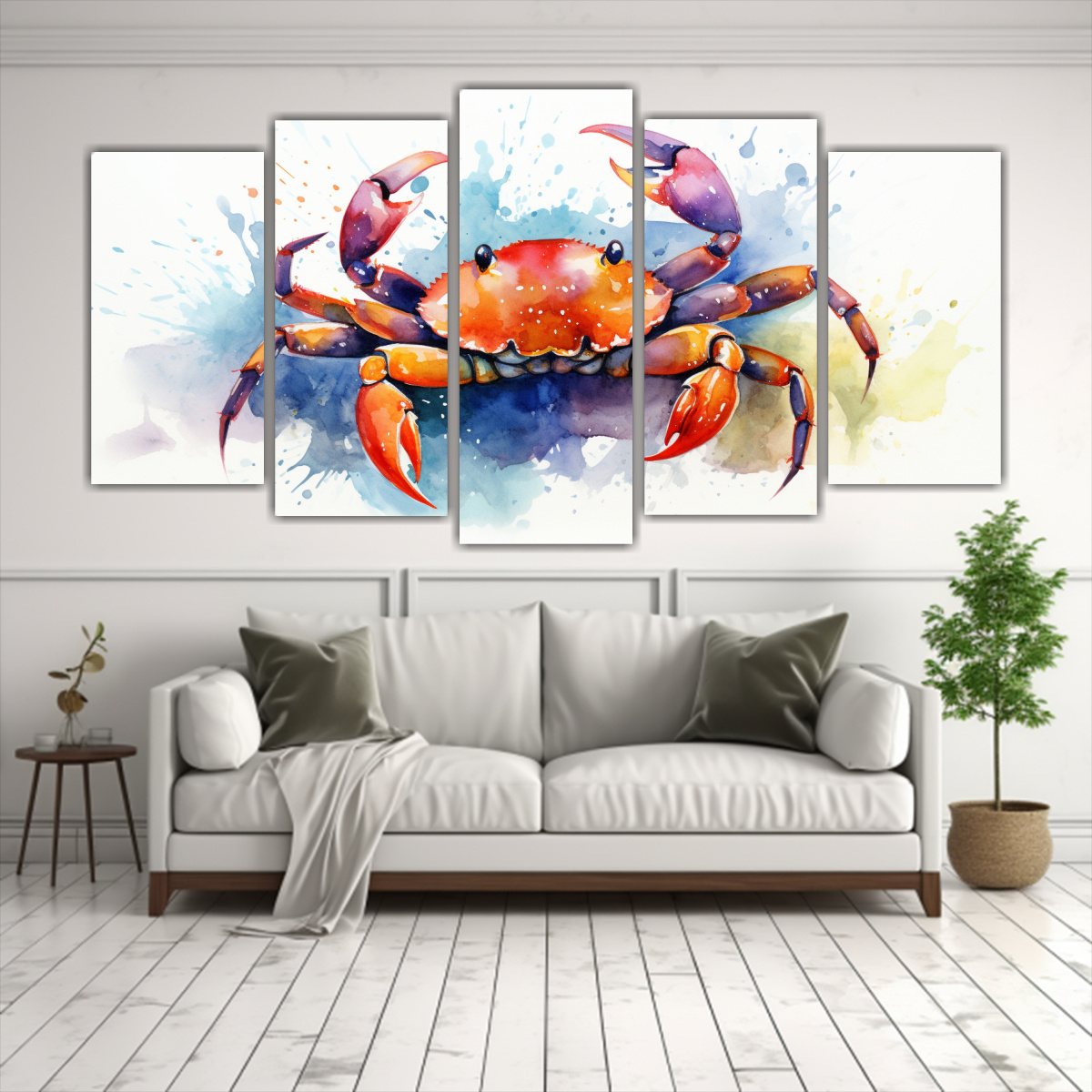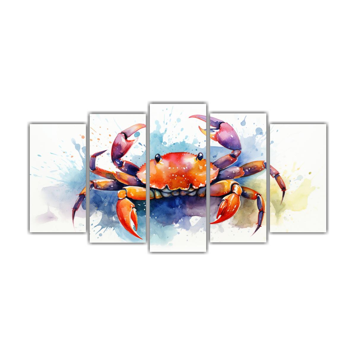 Conjunto 5 Cuadros Tela Para Cuarto Cangrejo Acuarelas Coloridas