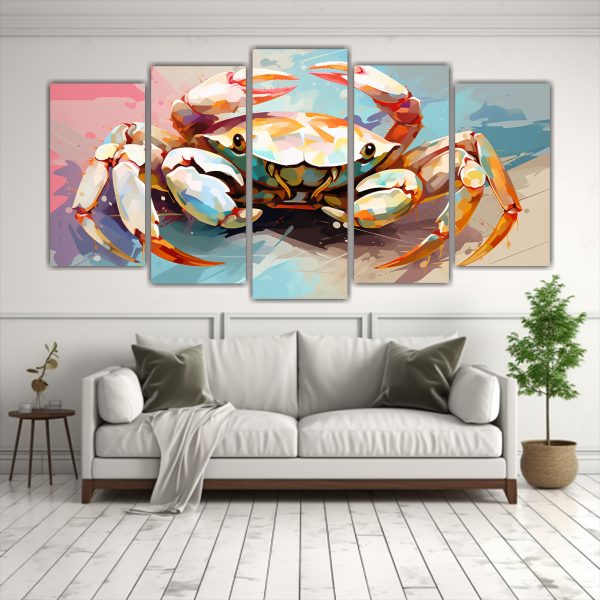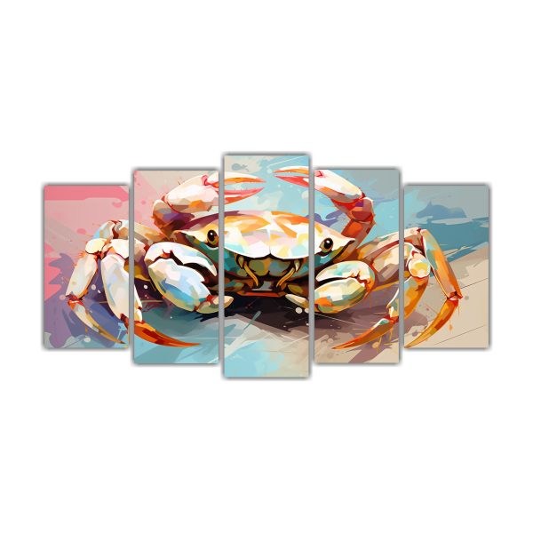 Conjunto 5 Cuadros Vanguardia Tema Cangrejo En Colores Luz Y Crema