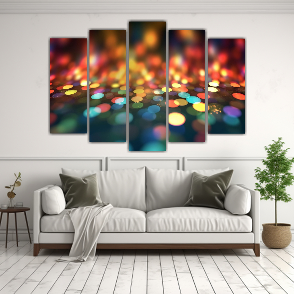Conjunto 5 Lienzos Abstracto Alegría Luces Abstractas Fondo Bokeh Colorido Luxuriante