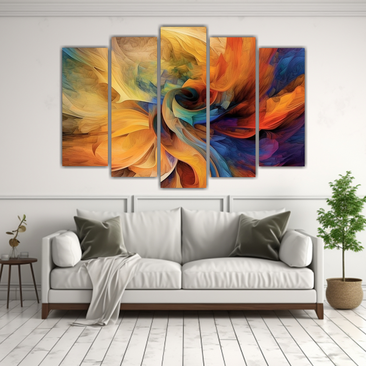 Conjunto 5 Lienzos Estilo Galería Arte Abstracto Multicolor Hermoso