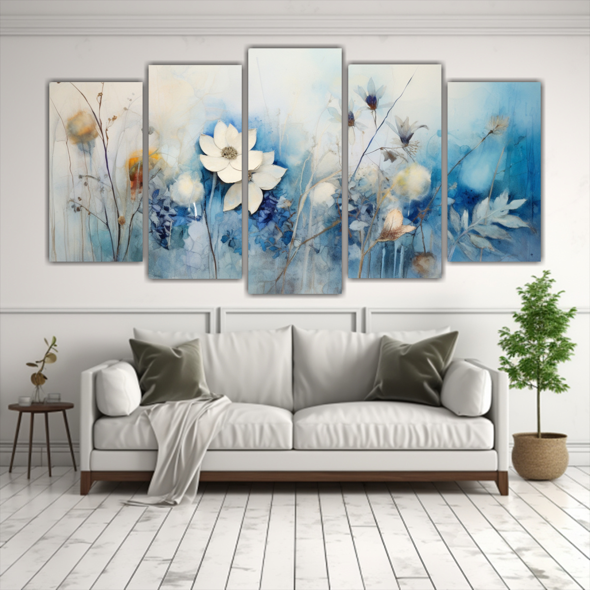 Este conjunto de 5 lienzos temáticos invernales en tonos plateado, verde azulado, gris, azul marino grisáceo y turquesa sería perfecto para decorar una sala de estar moderna y elegante Colócalos encima de un sofá gris claro para resaltar los colores y crea una atmósfera cálida y acogedora Además, combínalos con cojines y cortinas en tonos similares para lograr una armonía visual en la habitación