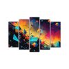 Conjunto 5 Lienzos Patrón Azul Abstracto Intenso Decoración Única