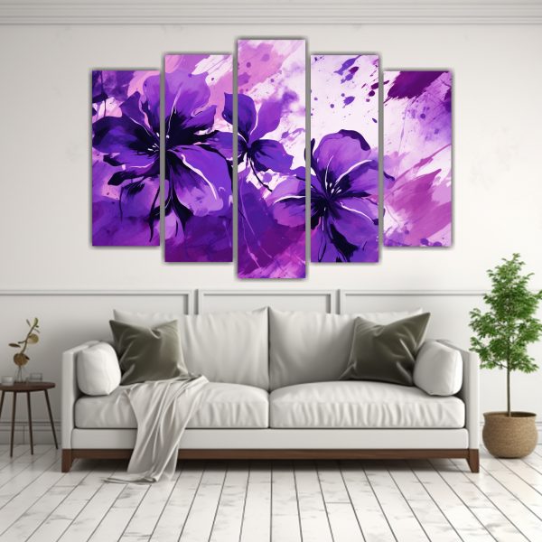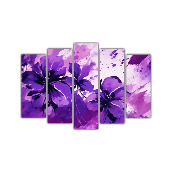 Conjunto 5 Lienzos Tela Imagen Interiores Morados Neonoir Estilo Mediano
