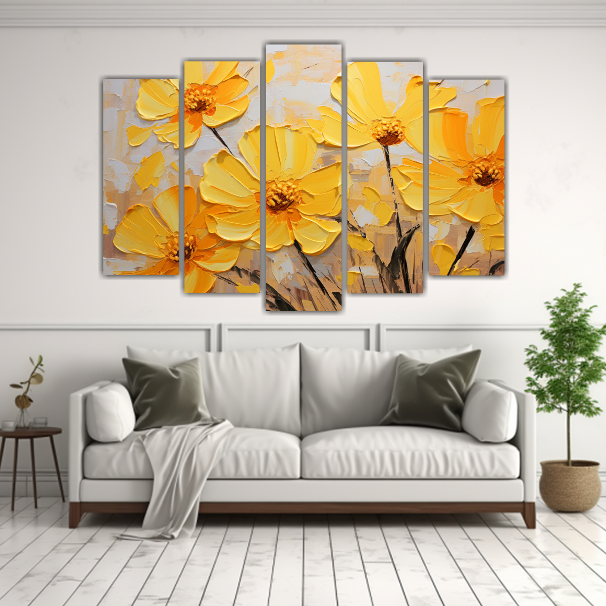 Conjunto 5 Lienzos Tela Inspiración Equilibrio Amarillo Flores