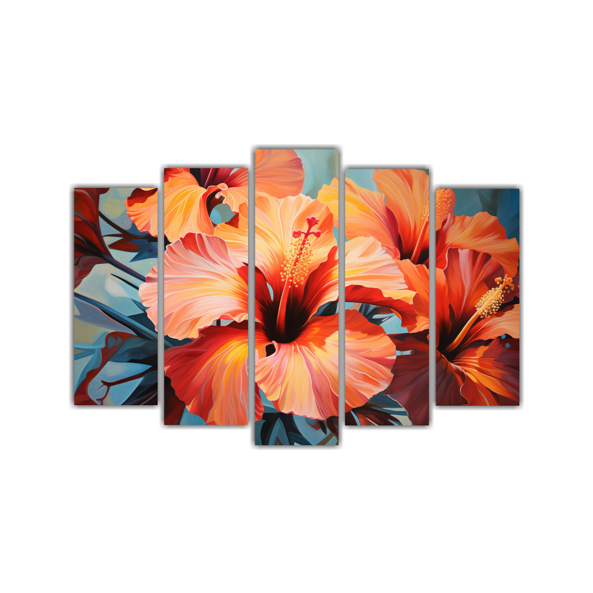 Conjunto 5 Lienzos Tela Venta Formación Flores Abstractas Hibiscos Arte óleo