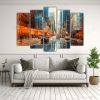 Conjunto 5 Lienzos Vintage Cocina Estilo Ámbar Y Aguamarina, Nueva York