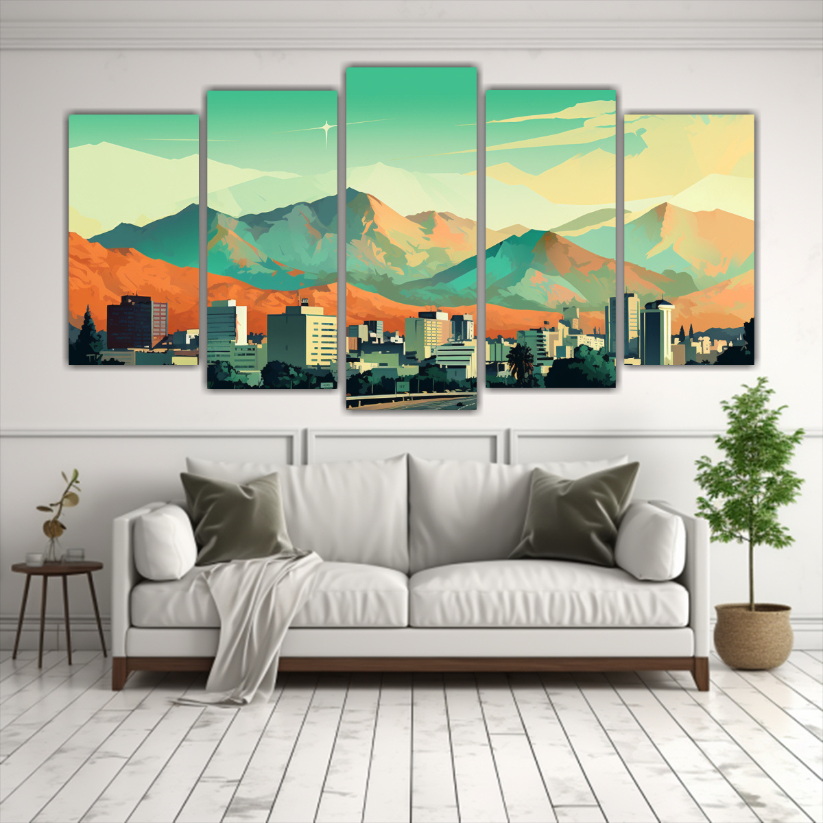 Conjunto 5 Pinturas Conceptuales Santiago En Chile En Colores Pastel Y Verde Neo