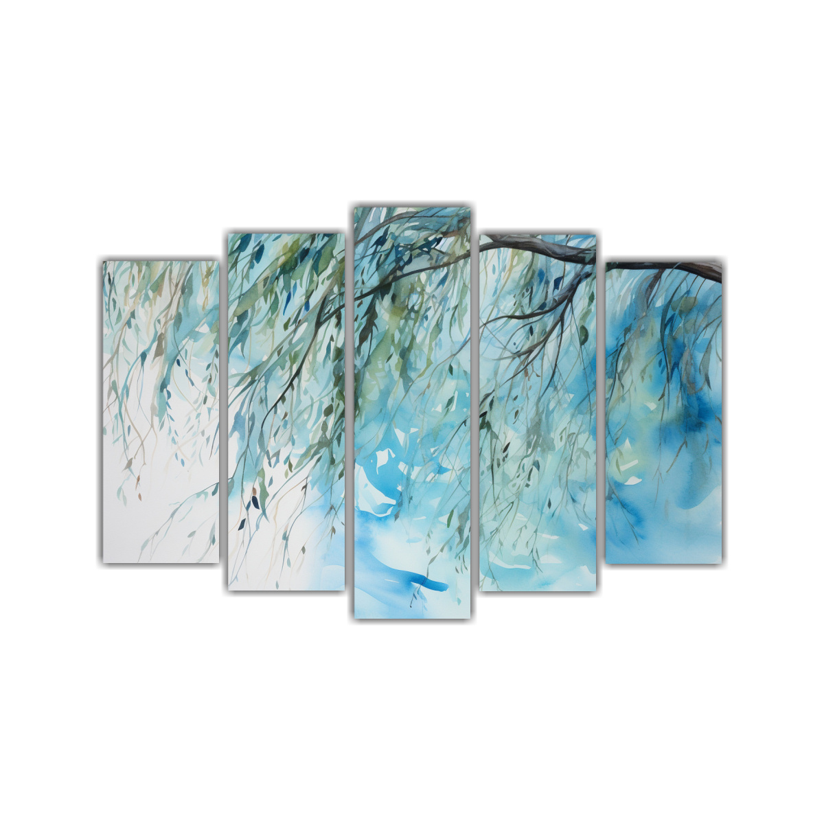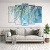 Conjunto 5 Telas Bastidor Diseño Interiores Árbol Sauce Turquesa Y Azul Pintura Abstracta