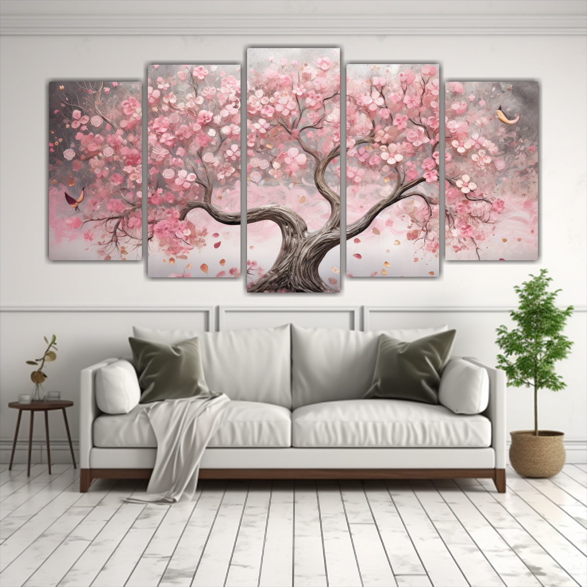 Decora tu espacio con el Conjunto 5 Telas Bastidor Sensibilidad artística árbol en rosa y plata Hecho con materiales de alta calidad y diseño exclusivo Precios económicos y envío rápido en DecoCuadros
