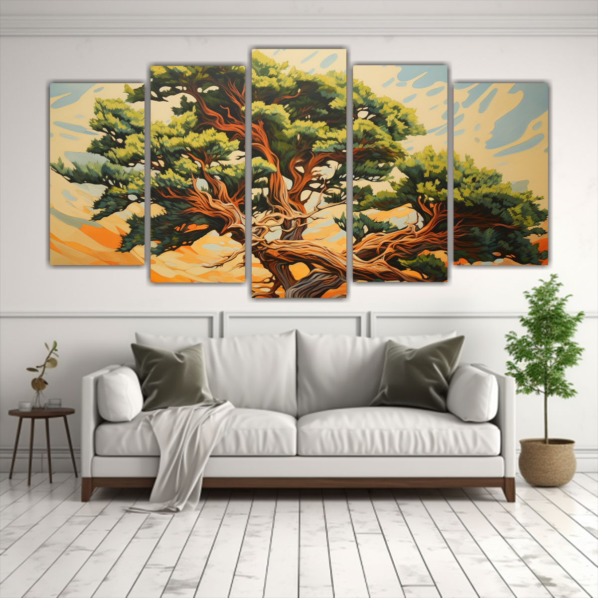 Este conjunto de 5 telas tonos baño árbol cedro es perfecto para decorar tu sala de estar o dormitorio Puedes colocarlos en una pared de color blanco o en tonos grises para resaltar su estilo abstracto y detalle en estilo Estilo óleo Combínalos con muebles modernos y accesorios en tonos plateados y grises para crear un ambiente elegante y sofisticado ¡Obtén la mejor calidad y diseño exclusivo con DecoCuadros!