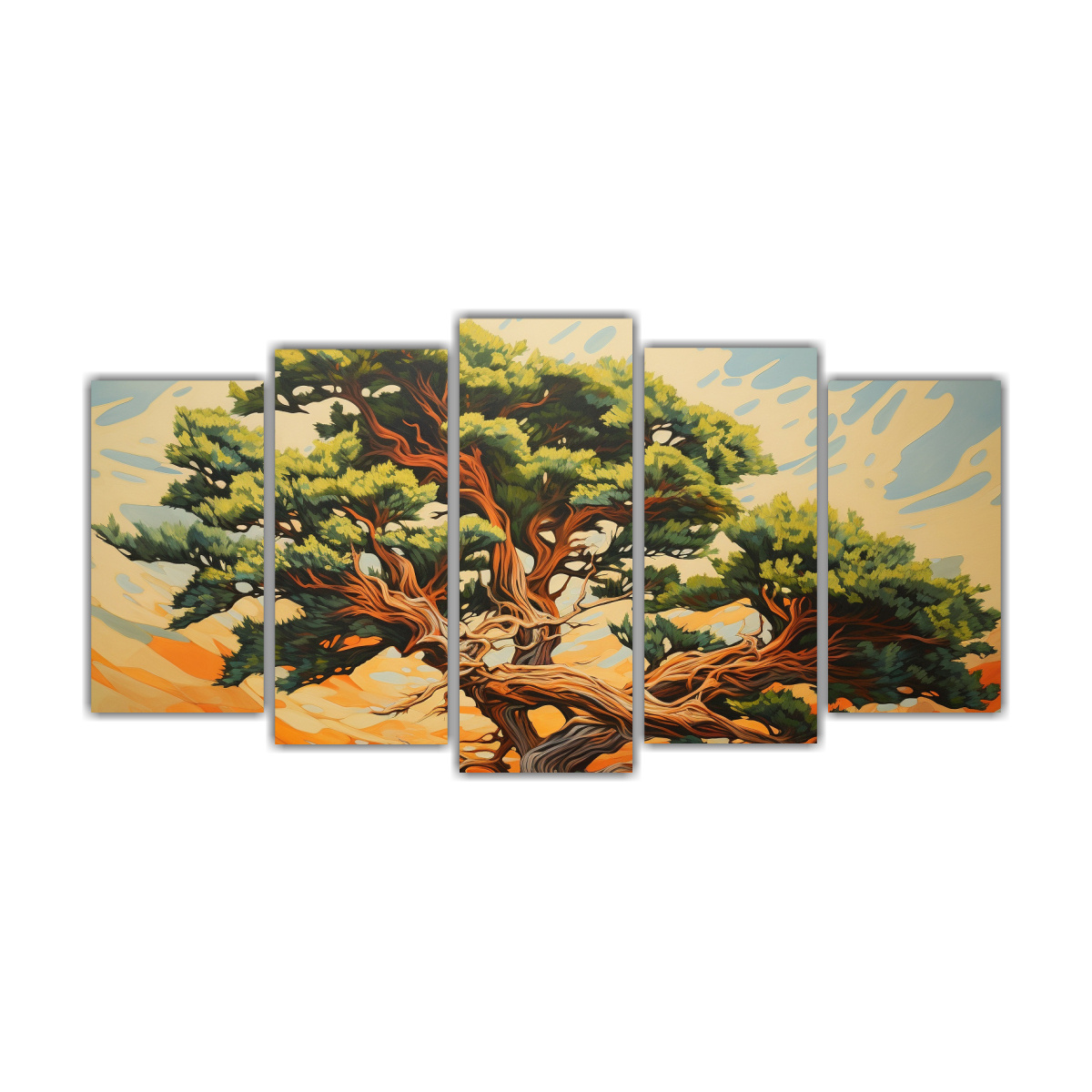 Conjunto 5 Telas Tonos Baño Árbol Cedro Pintura Abstracta Estilo óleo Alta Detalle Pa Decoración Pinturas