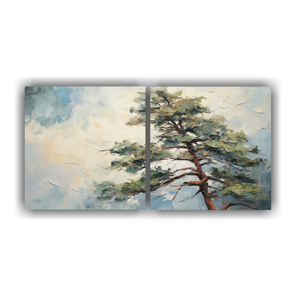 Conjunto De 2 Cuadros De Lienzo Rectangular Con Un árbol De Pino Pintura Abstracta Al óleo De Estilo Detallado Alto