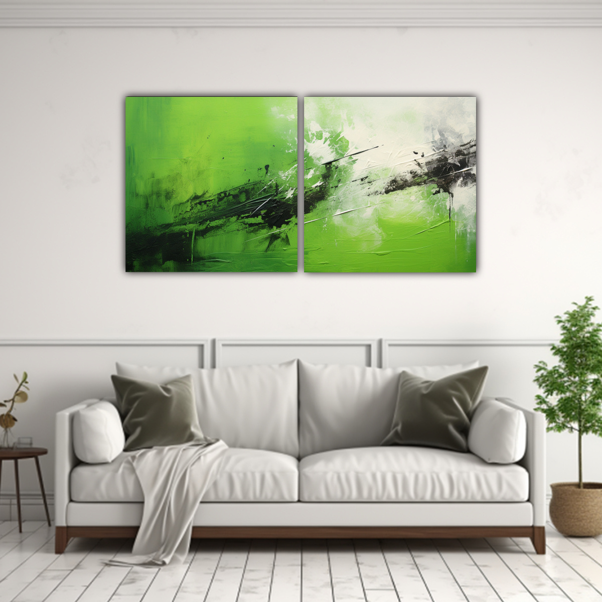 Añade un toque de estilo a tus espacios con el conjunto de 2 lienzos de tela tonos street art canvas abstracto verde Estos cuadros decorativos impresos en tela de alta calidad con bastidores de madera destacan por su diseño exclusivo y su excelente relación calidad-precio Elige la mejor opción para decorar tus paredes y disfruta de entregas rápidas y gratuitas en Santiago y envíos express a regiones