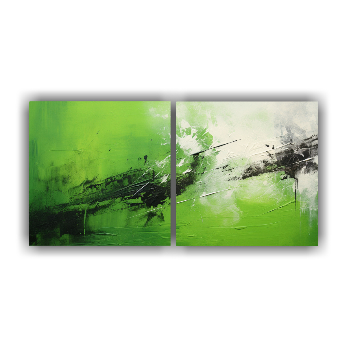Conjunto De 2 Lienzos De Tela, Arte Callejero Abstracto Verde